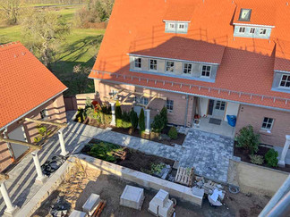 Denkmal: Während im Neubau die Rohinstallation eingebaut wird, nimmt die Gestaltung der Außenanlagen im künftigen Gästehaus Mönchswald nach und nach Form an.